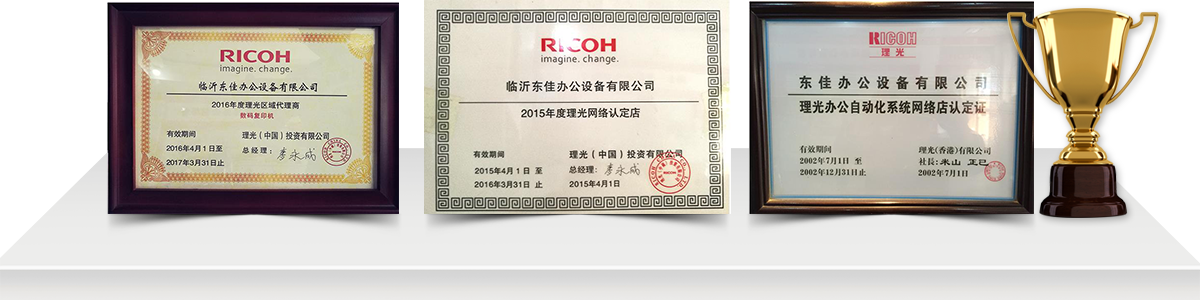 臨沂東佳辦公設(shè)備有限公司成立于1999年,是一家專賣臨沂理光打印機,臨沂復印打印一體機等理光辦公設(shè)備及專業(yè)維修服務(wù)于一體的臨沂復印機租賃服務(wù)性公司,在多年來的努力拼搏下,公司發(fā)展的發(fā)展突飛猛進,自2002年至今連續(xù)十九年的理光辦公設(shè)備代理商,先后獲得了理光(我國)授權(quán)臨沂總代理,理光數(shù)碼復印機,一體機臨沂總代理,理光辦公設(shè)備網(wǎng)絡(luò)認證店,理光辦公設(shè)備維修認定店等產(chǎn)品代理資質(zhì)及維修資質(zhì)。并配備了大量理光數(shù)碼辦公設(shè)備原裝零配件及其系列的純正耗材。